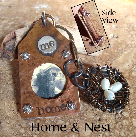 Home & Nest – A dimensional shadowbox house pendant is joined with a nest home for our feathered friends.  Learn to fabricate, drill and texture copper.  Assemble with rivets and top off with a letter stamped soldered piece at the rooftop.  Use several types of wire and real pearls to create a woven next.  Neck chain in included.  You need to bring a pair of round nose, 2 chain nose pliers (smooth jaw – no ridges inside) & a decent pair of flush cutters to class.